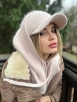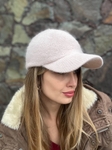 Вʼязана бейсболка виконана із ангори (60%) з додаванням акрилу (40%), тому має приємну на дотик текстуру та добре утримує тепло.