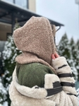 Теплий капор виконаний із тканини букле з флісовою підкладкою.