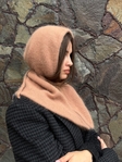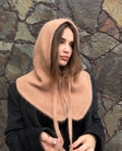 Вʼязаний капор виконаний із ангори (60%) з додаванням акрилу (40%), тому має приємну на дотик текстуру та добре утримує тепло.