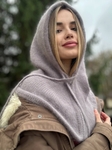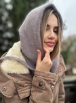 Вʼязаний капор виконаний із ангори (60%) з додаванням акрилу (40%), тому має приємну на дотик текстуру та добре утримує тепло.