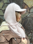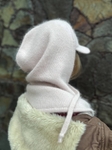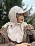 Вʼязаний капор виконаний із ангори (60%) з додаванням акрилу (40%), тому має приємну на дотик текстуру та добре утримує тепло.
