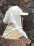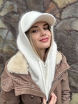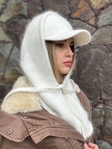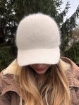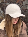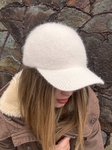 Вʼязана бейсболка виконана із ангори (60%) з додаванням акрилу (40%), тому має приємну на дотик текстуру та добре утримує тепло.