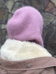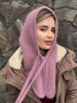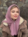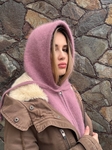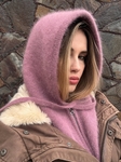 Вʼязаний капор виконаний із ангори (60%) з додаванням акрилу (40%), тому має приємну на дотик текстуру та добре утримує тепло.