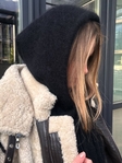 Вʼязаний капор виконаний із ангори (60%) з додаванням акрилу (40%), тому має приємну на дотик текстуру та добре утримує тепло.