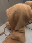 Вʼязаний капор виконаний із ангори (60%) з додаванням акрилу (40%), тому має приємну на дотик текстуру та добре утримує тепло.