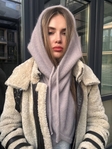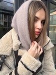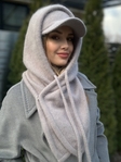 Вʼязаний капор виконаний із ангори (60%) з додаванням акрилу (40%), тому має приємну на дотик текстуру та добре утримує тепло.