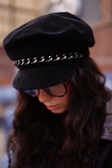 Картуз з натуральної замші з металевим ланцюжком чорний (001)